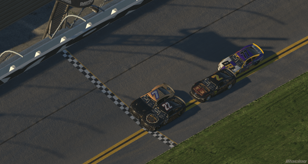The All American Racing Network opened its inaugural 2026 season Sunday with a 100-lap showdown at Daytona International Speedway that delivered sustained pressure, shared control, and a finish that could not have been scripted better. In a race that refused to settle early, Mike Alley (#22) claimed the league’s first-ever victory by passing Clifford Allison III coming to the start/finish line in a door-to-door sprint to the checkered flag.
